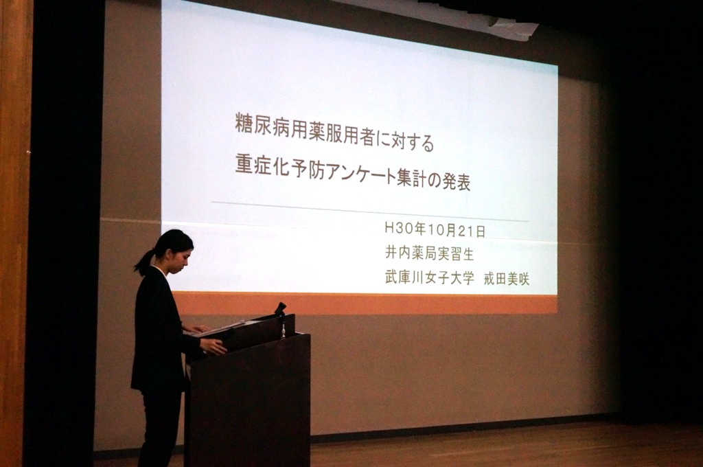 - 糖尿病用薬服用者に対する重症化予防アンケート集計の発表-井内薬局実習生 戒田さん