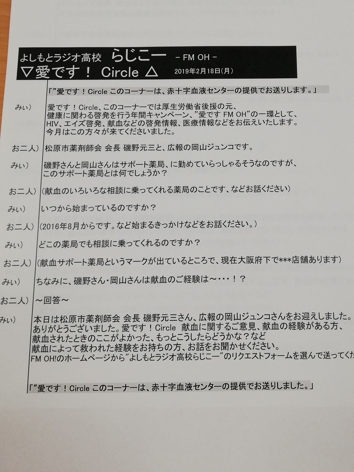 松原市薬剤師会の献血サポート薬局活動が評価されて、中河内・南河内薬剤師会を代表してラジオ番組に出演して収録をしてきましたのでお知らせします。