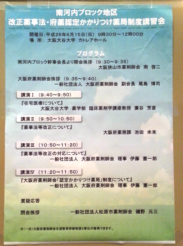 本日は、松原市薬剤師会研修会26-3に参加した。